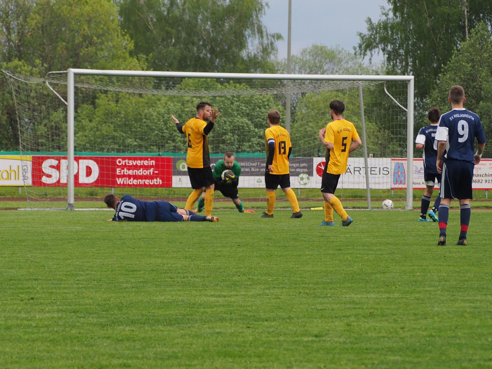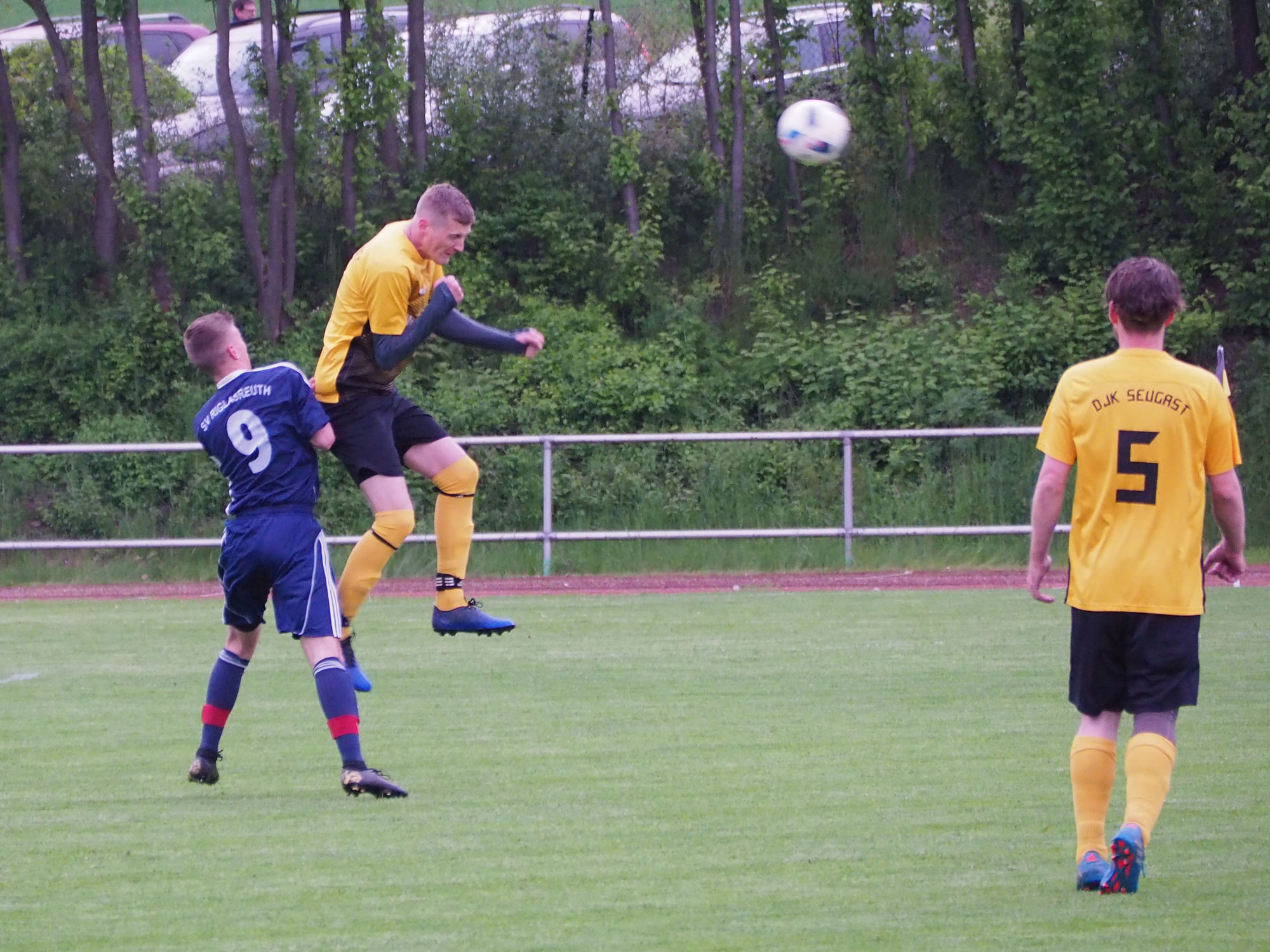Vor einer Publikumskulisse von über 400 Zuschauern im Erbendorfer Kreinzl-Stadion gelang es Markus Lang bereits in der zehnten Minute, mit einer Bogenlampe aus 25 Metern Torentfernung die DJK in Führung zu schießen. Als im weiteren Spielverlauf zwei Riesenchancen durch Kopfball für Riglasreuth folgten – letztere durch herausragende Reaktion des Seugaster Torwarts verhindert –, entwickelte sich die erste Halbzeit für die Seugaster Fans zu einer Zitterpartie.