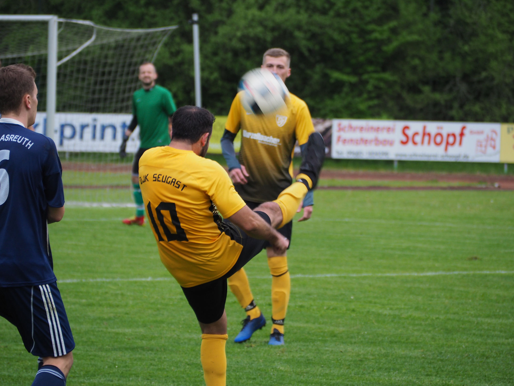 In der zweiten Halbzeit erzielte Tomas Sindelar nach einem Freistoß von Gabi Schimon den erlösenden 2:0-Treffer in der 55. Minute, der dem gegnerischen Torwart durch die Hände glitt. Trotz der sehr ordentlichen Abwehrleistung der schwarz-gelben Mannschaft brachte Riglasreuth in der 80. Minute das Leder in den Seugaster Kasten – allen Jubelgesängen der vielen gegnerischen Fans zum Trotz stand jedoch ein Riglasreuther im Abseits und es blieb folgerichtig beim 2:0.
