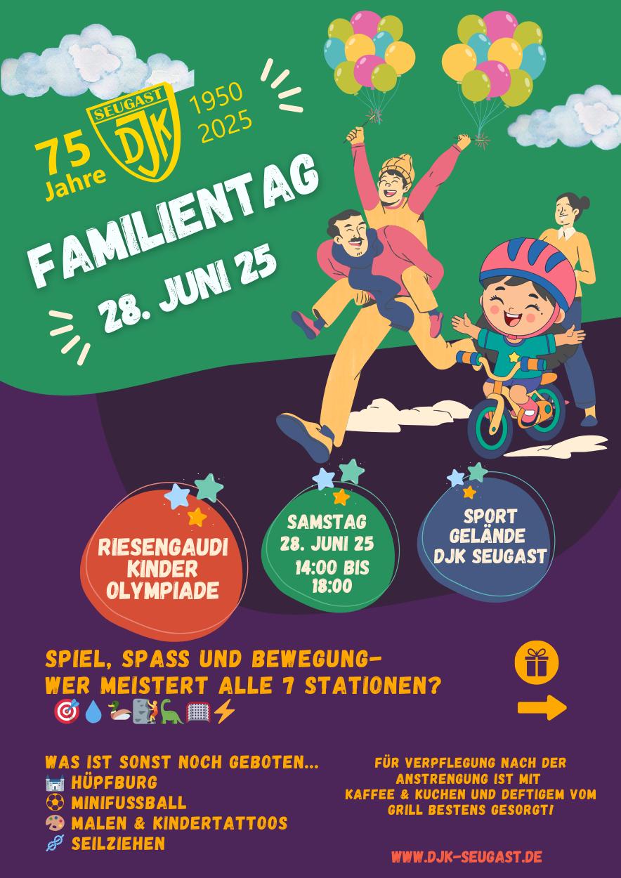 Zweiteilige Filmdokumentation über die 75jährige Geschichte des SV DJK Seugast mit Zeitzeugeninterviews und viel Bild- sowie Videomaterial. Start Teil I am Freitag, 27. Juni pünktlich um 20 Uhr im Festzelt. Teil II läuft nach dem Festakt. Der Film wird ausschließlich live gezeigt und nicht online angeboten.
